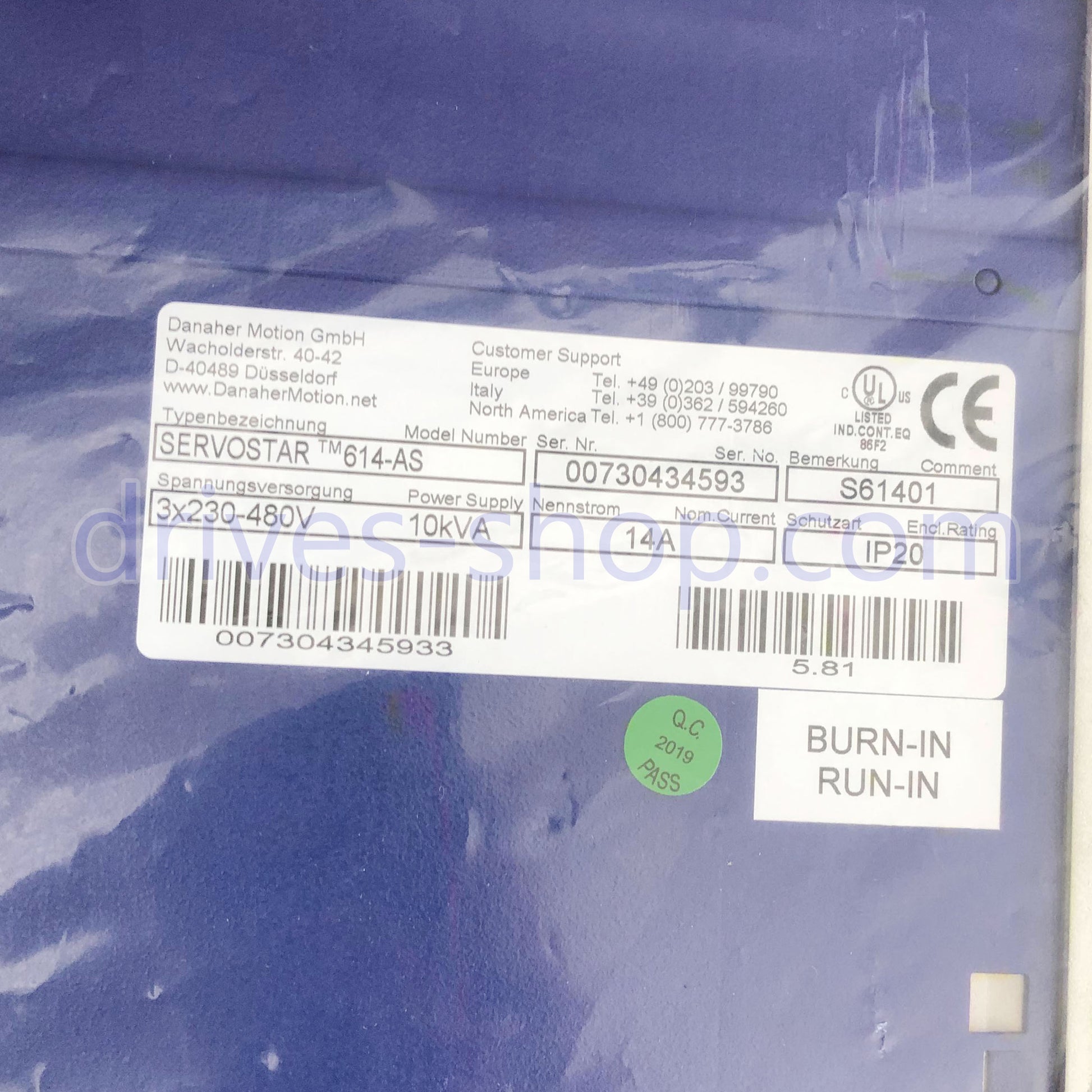 الوصف: 1 قطعة Kollmorgen Servostar 614-AS S61401 Servo Drive 11 ARMS 230-480 VAC 50-60 HZ جديد في الصندوق شحن سريع مع ضمان لمدة سنة واحدة Fedex/DHL/UPS